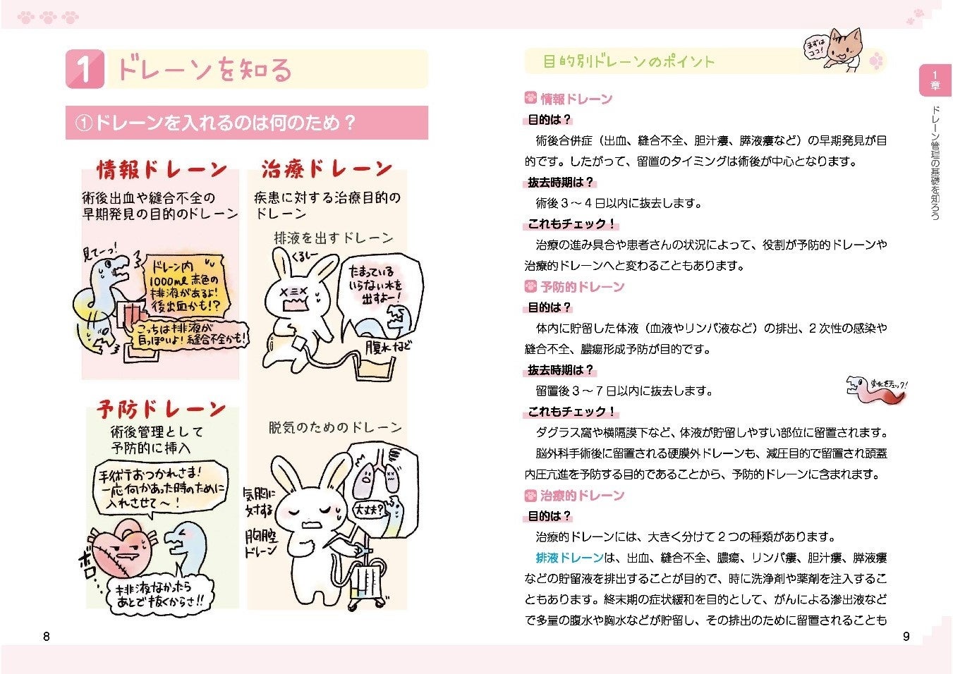 可愛い猫のイラストで、これまでも多くの書籍を出版してきた、看護師のかげさんが現場の医療職からのリクエストを受けて、ドレーン管理の入門書をついに刊行!