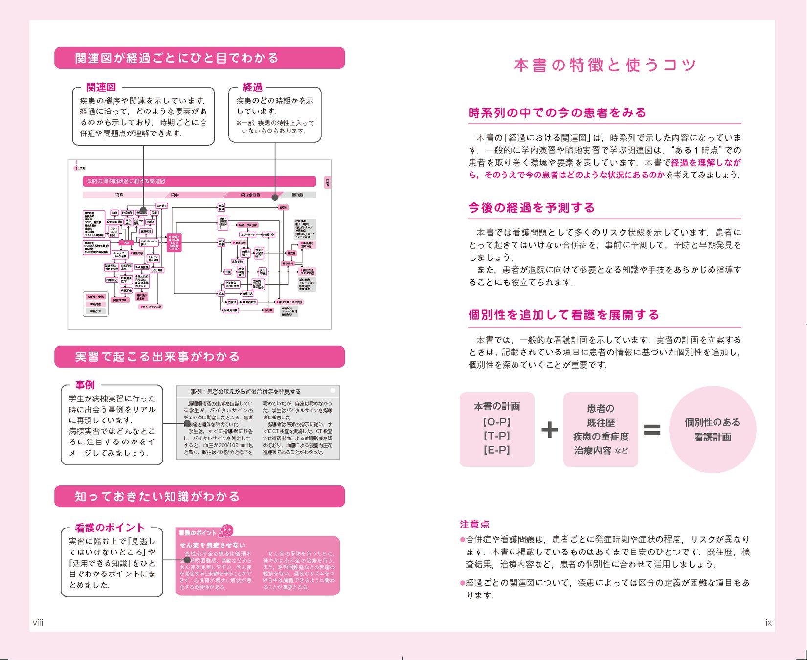 そのため、看護学生が、入学から最終学年まで、じっくり使い込め、座学の演習から臨地実習まで自分でカスタマイズして使えるような充実した内容の1冊となっています。