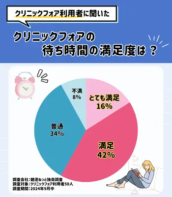 実際のアンケート結果でも、クリニックフォアのAGA診療の満足度は「とても満足」「満足」が70%と高評価を得ています。