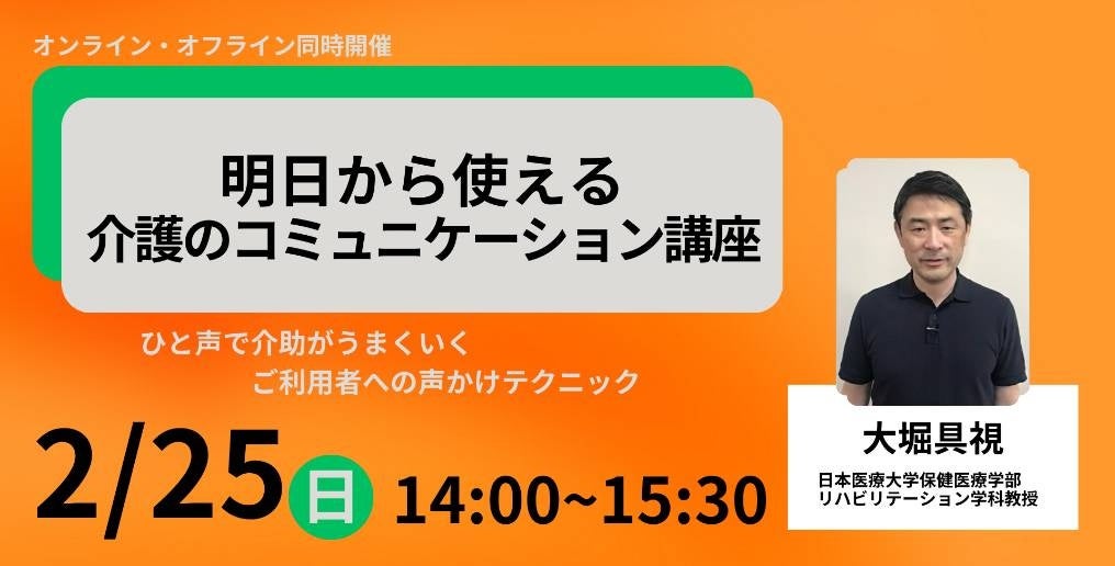 当社は、2024年2月25日(日)に「明日から使える介護のコミュニケーション講座 ~ひと声で介助がうまくいく ご利用者への声かけテクニック~」と題した介護技術セミナーを開催します。