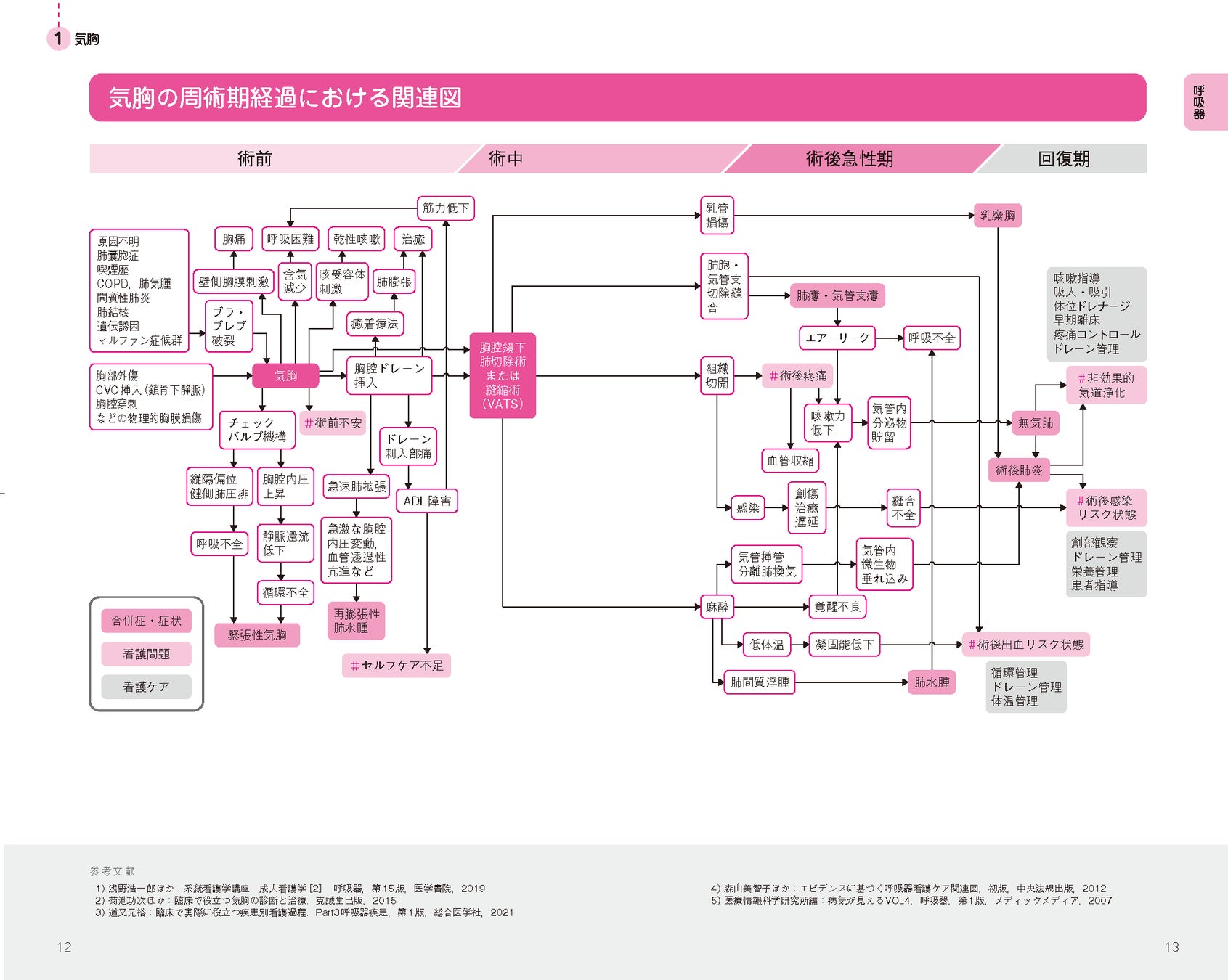 また、患者さんのリスクを把握するために必要な前提知識や、看護師の思考過程を図式化した関連図を併せて活用すれば、実習も怖くありません!